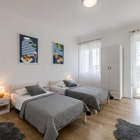 A 75 m^2-es apartman alig 1 km-re fekszik a Diocletianus palotájától és szomszédságában a Joker bevásárlóközponttól. Az 1 hálószobás apartman Split központjában található. A Jupiter-szentély továbbá mindössze 13 percnyi sétára van az ingatlantól.
